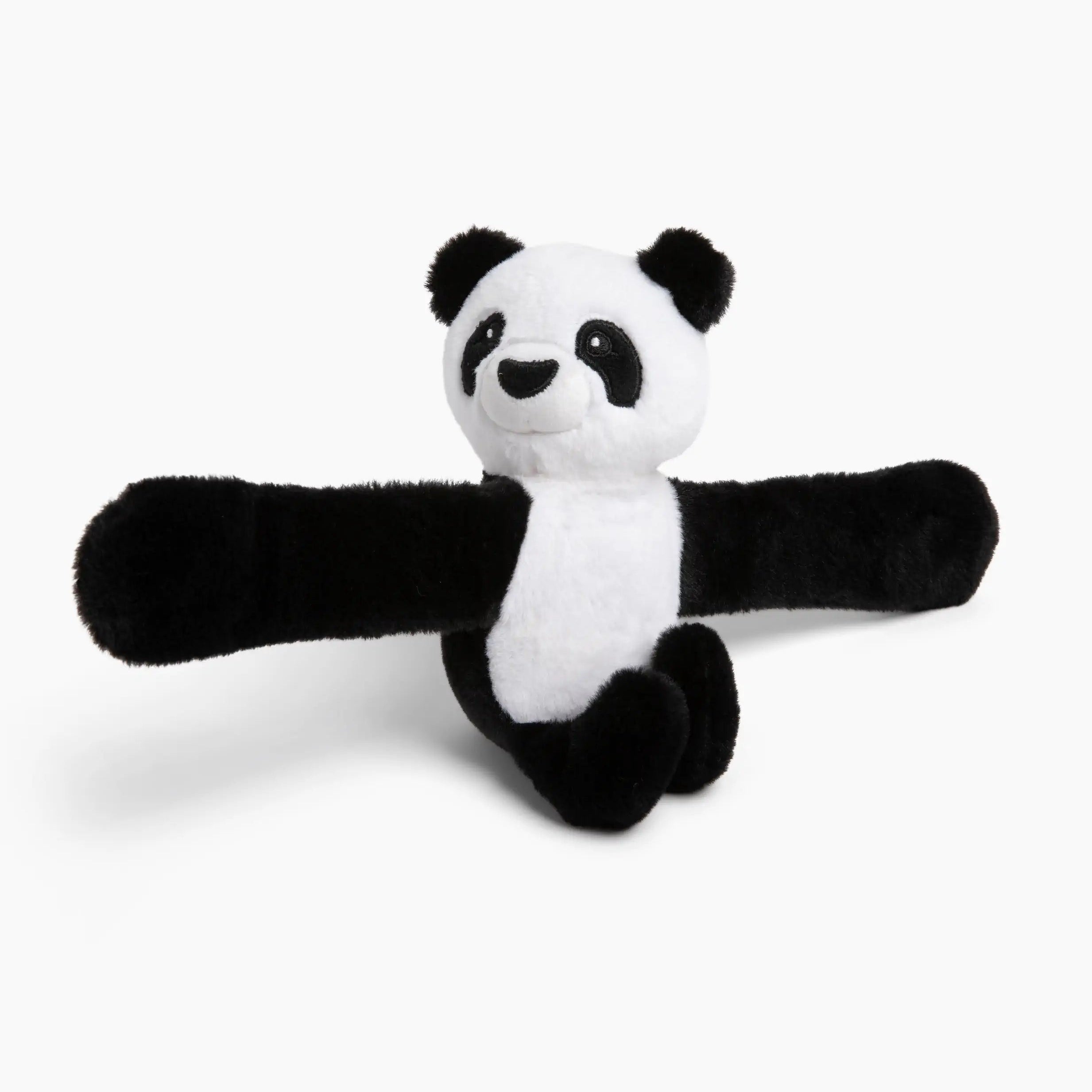 Hug Baby Bowie the Panda is a tiny version of our Bowie Hugimal, but this mini plush stuffed animal bracelet and bag charm hugs you with its wraparound arms instead of with weight.